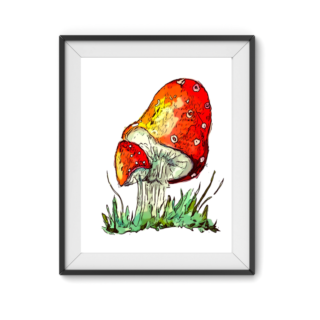 Magical mushroom here! Whether you go mushroom hunting, eat mushrooms in your pasta or do something entire different with mushrooms, this bright print is sure to bring joy to your day!
