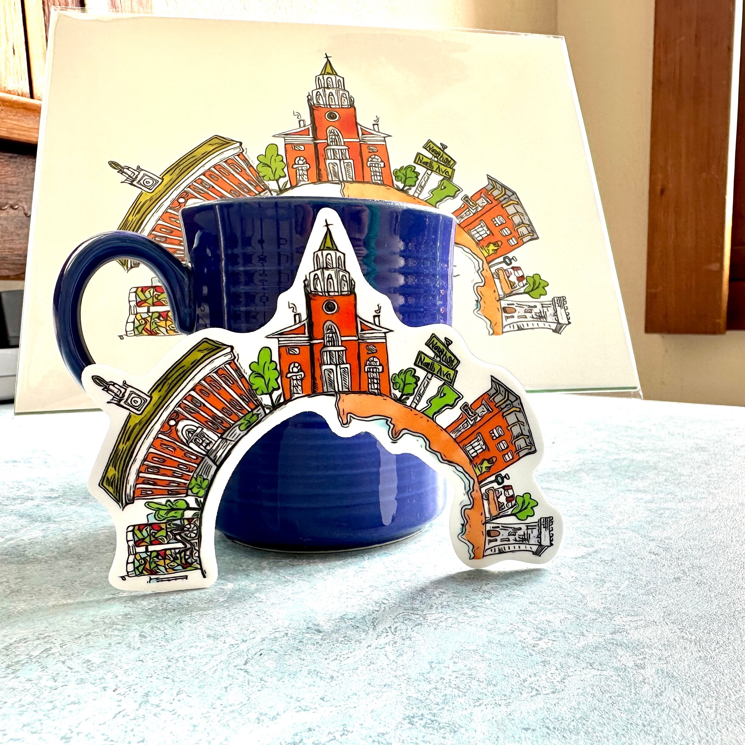 All stickers feature original artwork by Mellisa. Perfect for water bottles, computers, bikes, even the back of your car; wherever you can think of putting a sticker! Stickers average 2-3 inches each and are printed locally in Burlington by Sticky Brand. The quality stickers are long lasting, outdoor durable, have UV protective laminate that prevents colors from fading, and weatherproof adhesive.